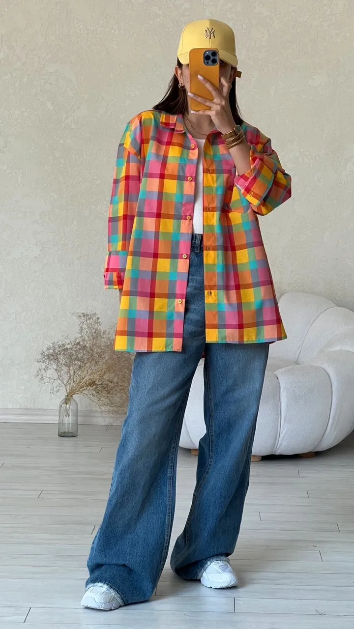 شومیز چارخونه رنگی