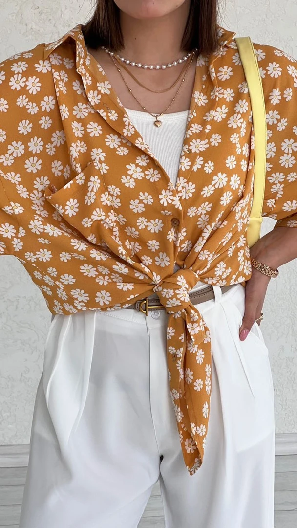 شومیز گل بابونه خردلی