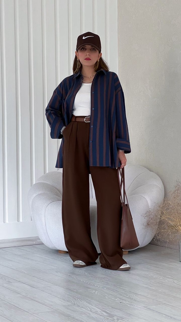 شومیز راه راه سرمه ای قهوه ای