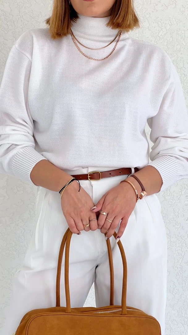Plain white turtleneck