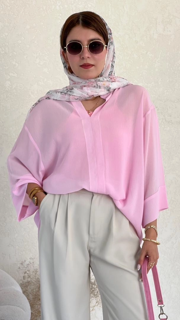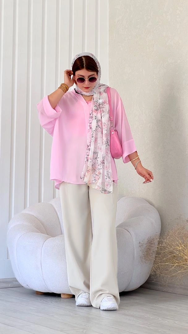 شومیز حریر صورتی پودری قاصدک