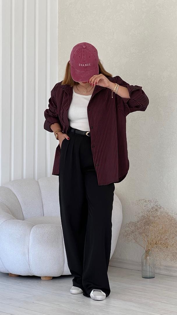 شومیز پنبه قرمز مشکی