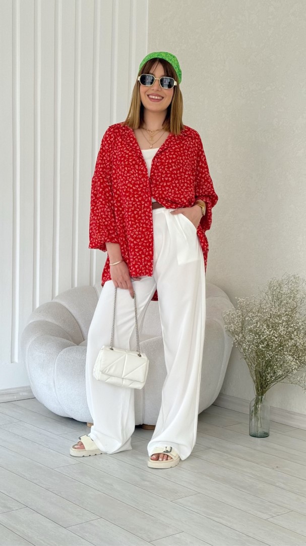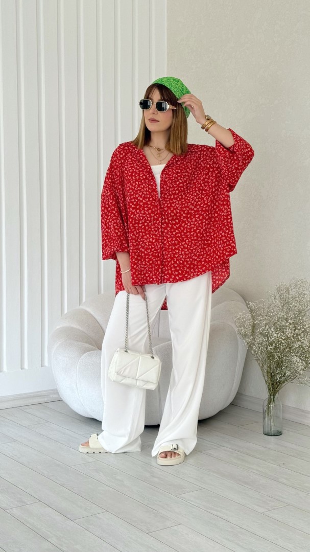 شومیز مهر گل قرمز