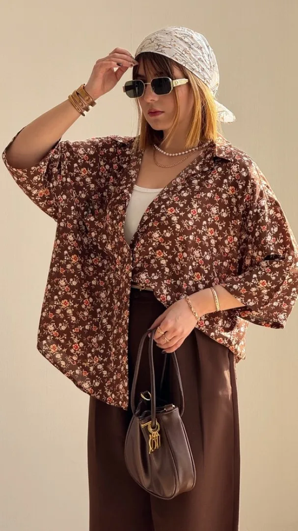 شومیز بهار طرح گل موکا