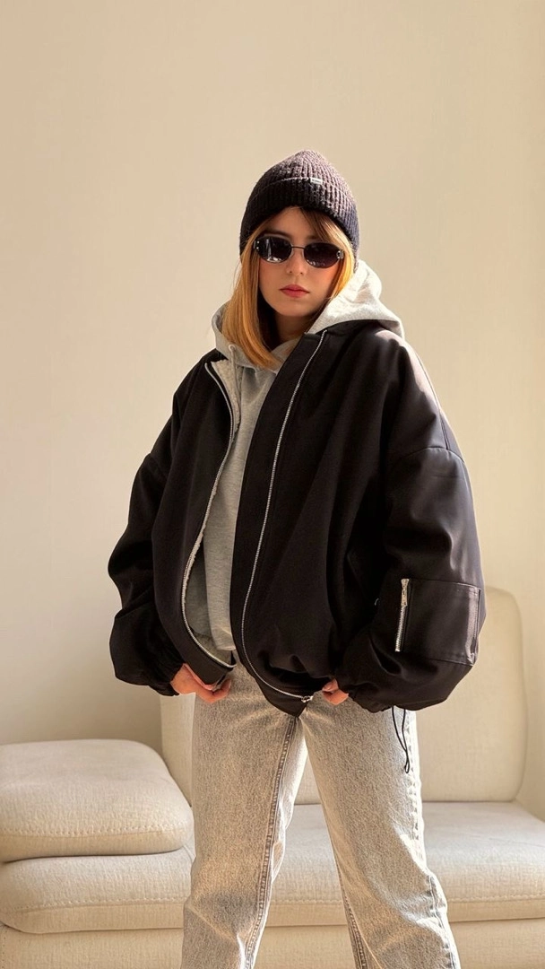 پایین کار استوپر دارد که می توان قد کاپشن را تنظیم کرد.
