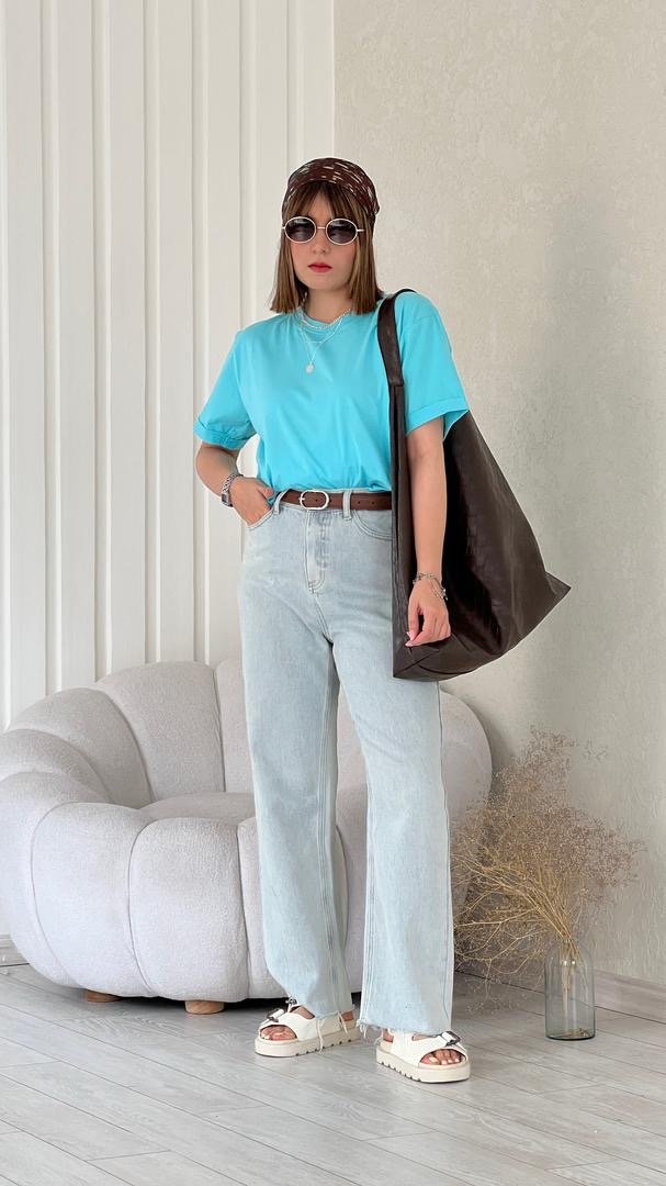 تیشرت رنگی آبی فیروزه ای