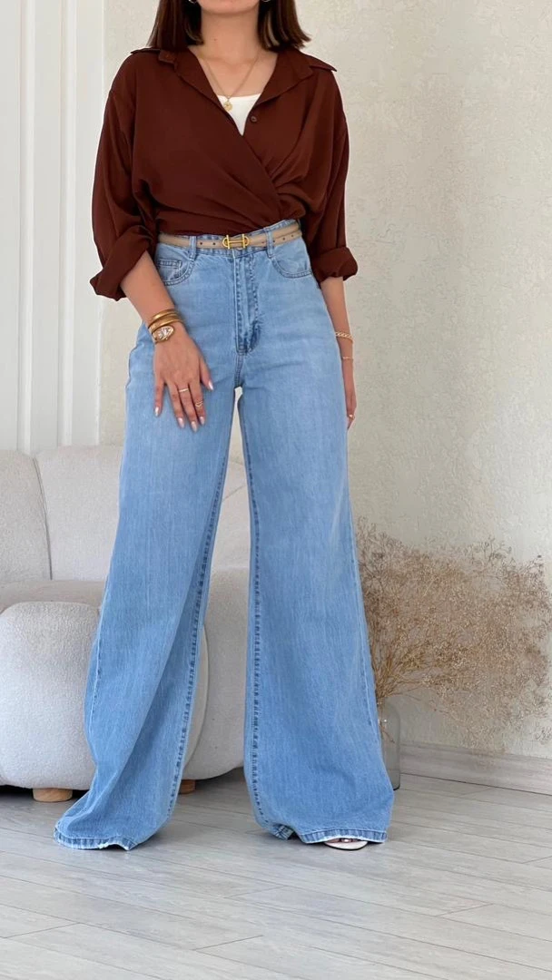 شلوار فول بگ آبی یخی