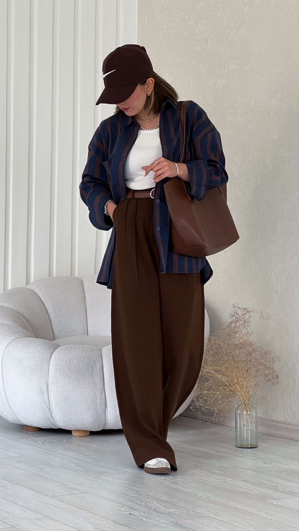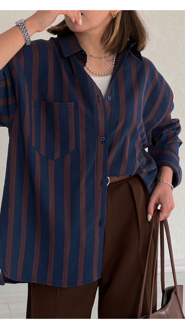 شومیز راه راه سرمه ای قهوه ای