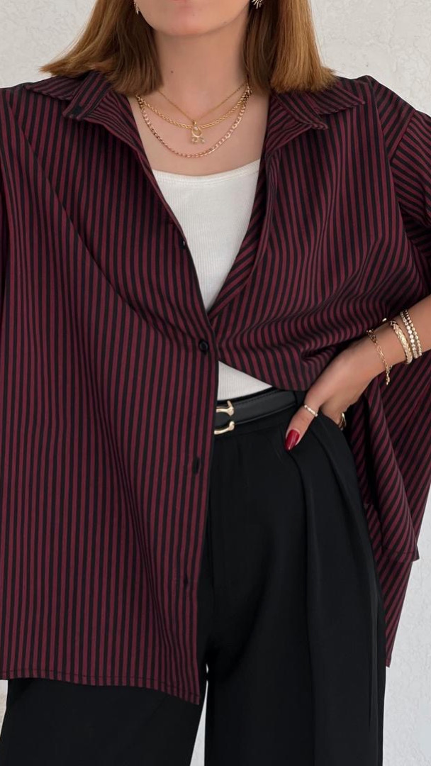 شومیز پنبه قرمز مشکی