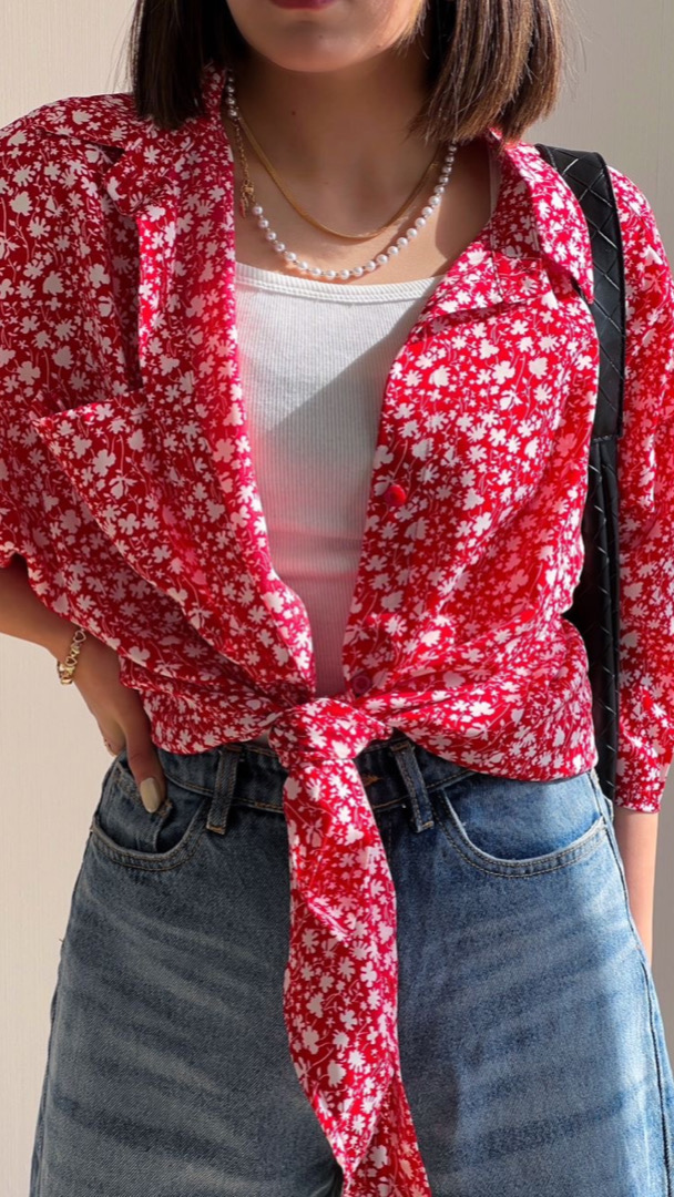 شومیز گل قرمز