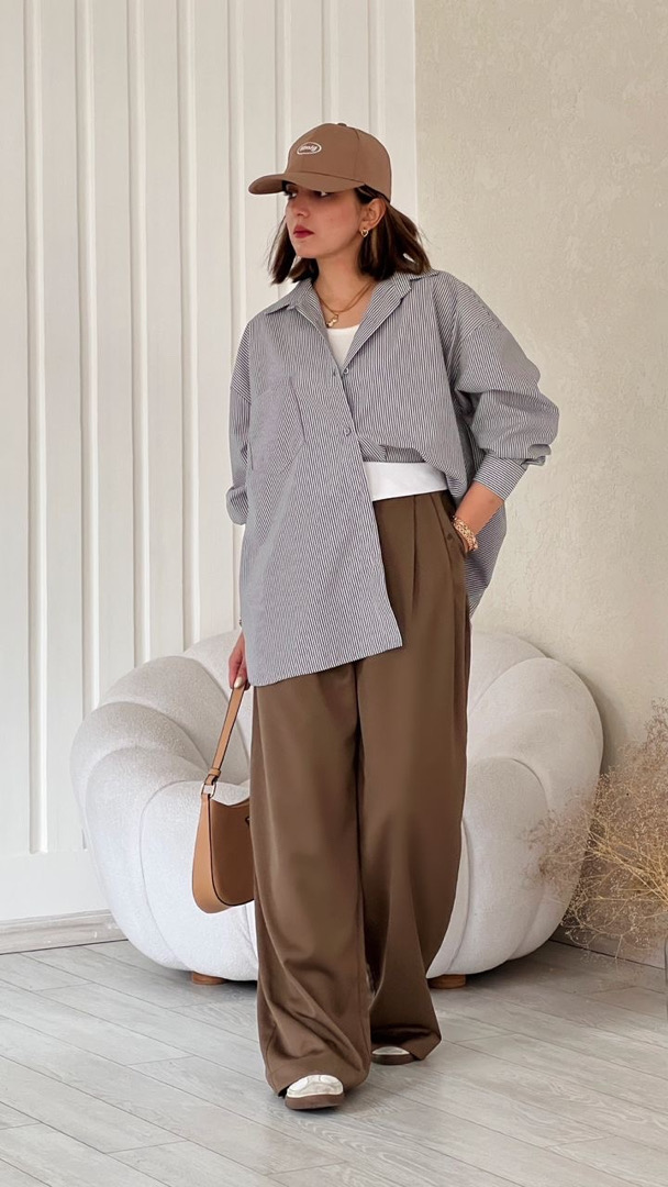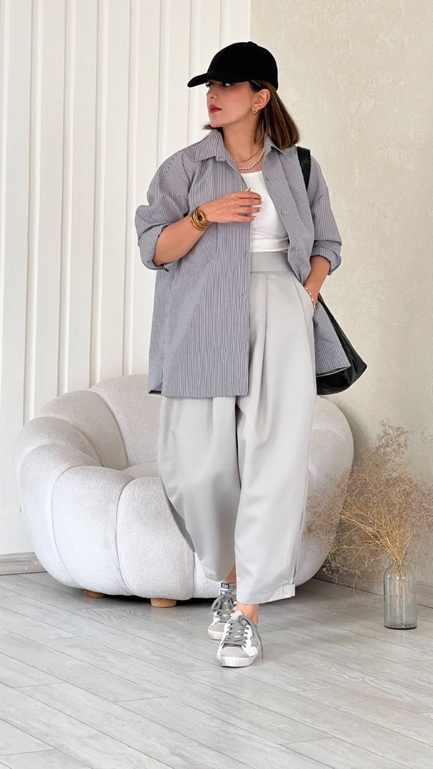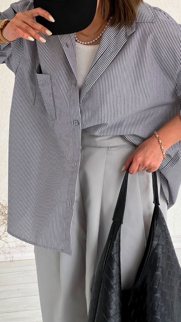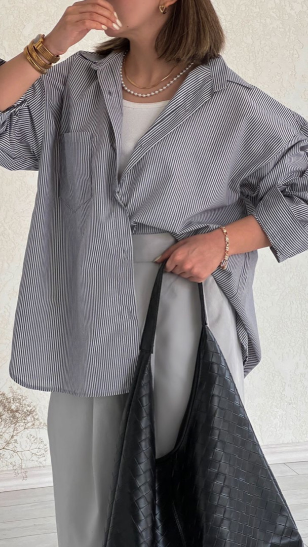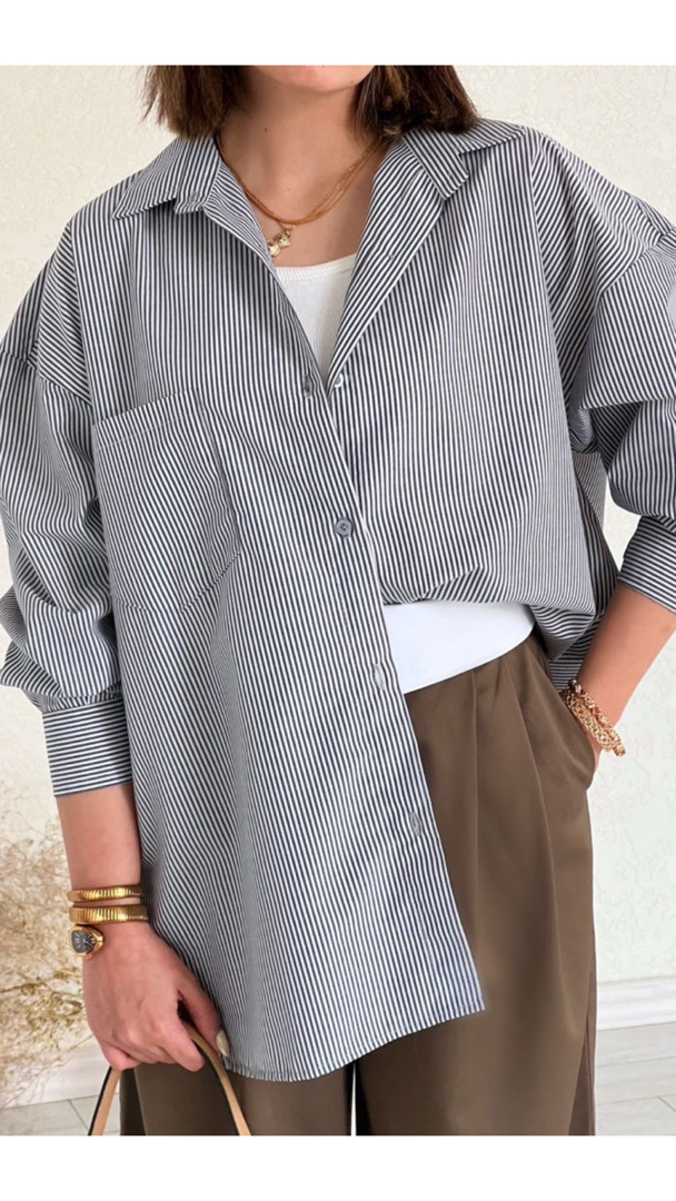 شومیز راه راه طوسی ساده