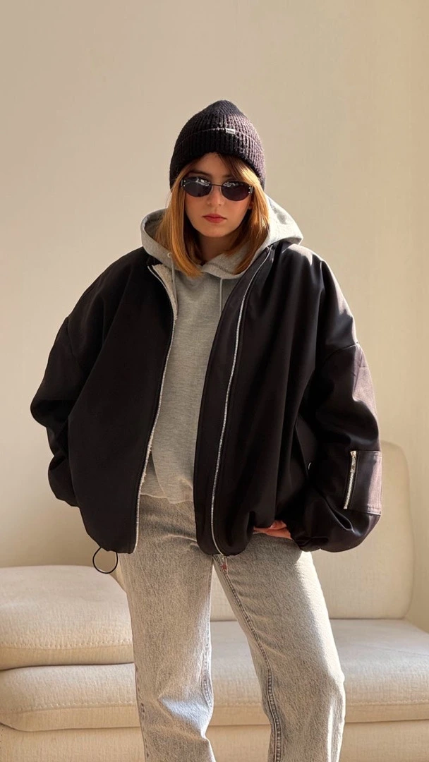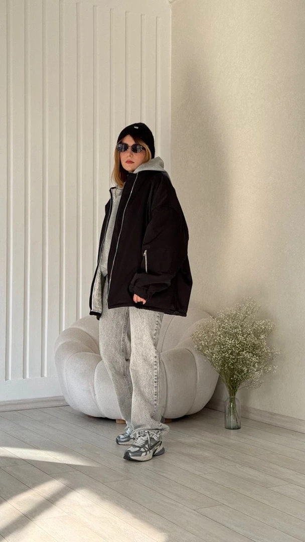 پایین کار استوپر دارد که می توان قد کاپشن را تنظیم کرد.